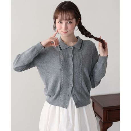 クラシカルなポロカラーに、繊細なケーブル編みを組み合わせたトレンド感溢れるカーディガン。