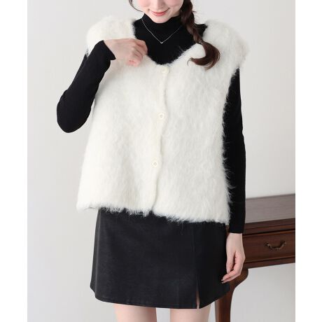プードルの毛のようにくるくるとした毛足が特徴のシャギー素材を使用したシーズンライクな雰囲気のベスト。