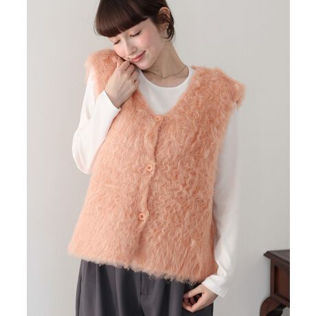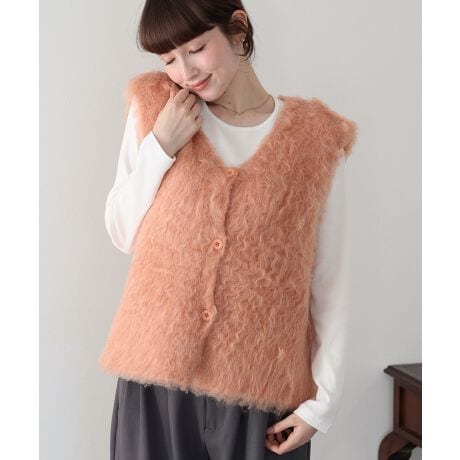 プードルの毛のようにくるくるとした毛足が特徴のシャギー素材を使用したシーズンライクな雰囲気のベスト。