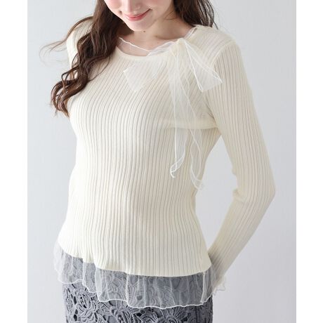 シアーリボンドッキングニット