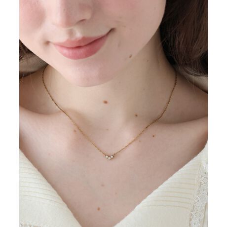 三つ並んだ控えめなビジューがが輝くデザインのネックレス。