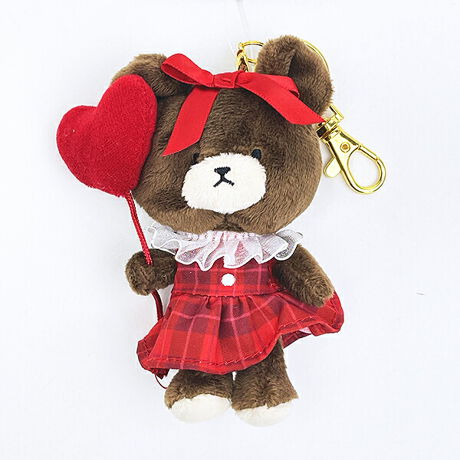 赤いチェック柄のワンピースにハートのバルーンのコーディネートがとってもキュート♪小ぶりなサイズがかわいいマスコットです♪