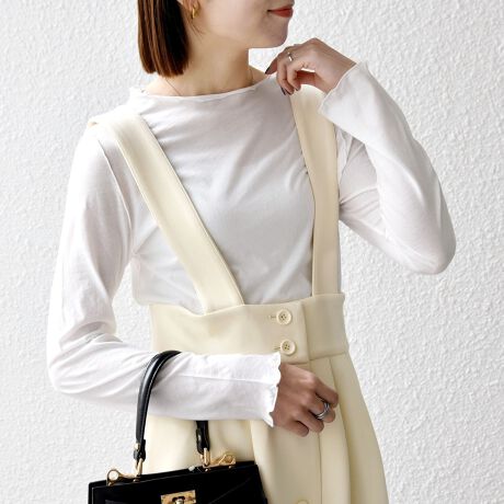 主役でも、インナーとしても活躍するプチハイネックのコットンロンT。