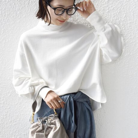 モックネックなので可愛くなりすぎず大人カジュアルな雰囲気です。