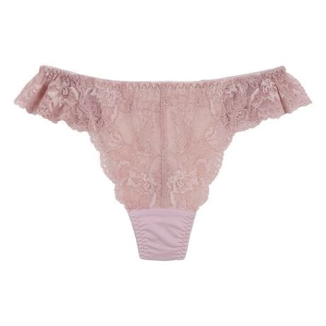 レースのフリルが可愛らしさも漂わせるTバックショーツ。
