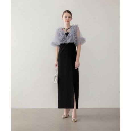 軽やかなチュール素材が、フォーマルながらも堅くなりすぎないモードな雰囲気を演出します。 結婚式・二次会・パーティーなど、特別な日を鮮やかに彩るドレスです。