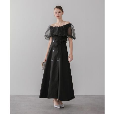 3WAYオフショルチュールトレンチディティールワンピ―スドレス モードとフェミニンの融合