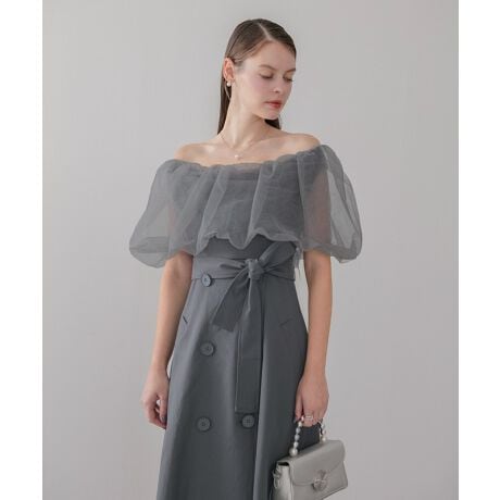 3WAYオフショルチュールトレンチディティールワンピ―スドレス モードとフェミニンの融合