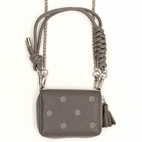ドット刺繍のジャバラチャームウォレットショルダー。