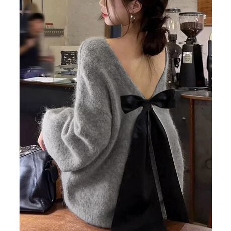バックオープンリボンニットトップス韓国風
