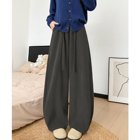 ハイウエストで脚がすらっと見えるワイドカーブパンツ。
