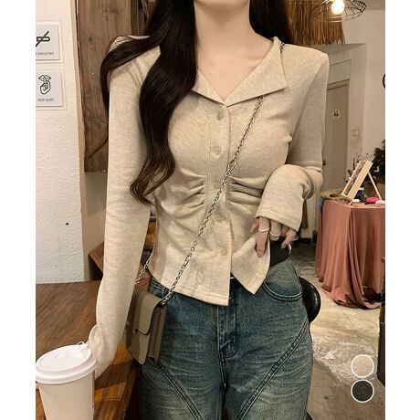 襟付きデザインでシャープな印象を演出するコンパクトトップス。