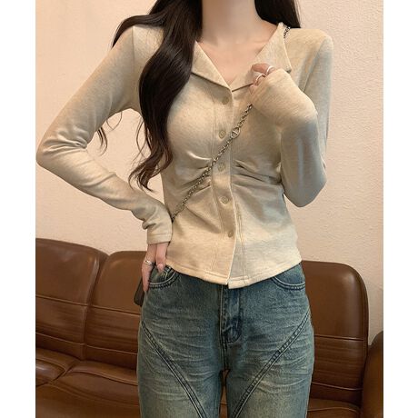 襟付きデザインでシャープな印象を演出するコンパクトトップス。