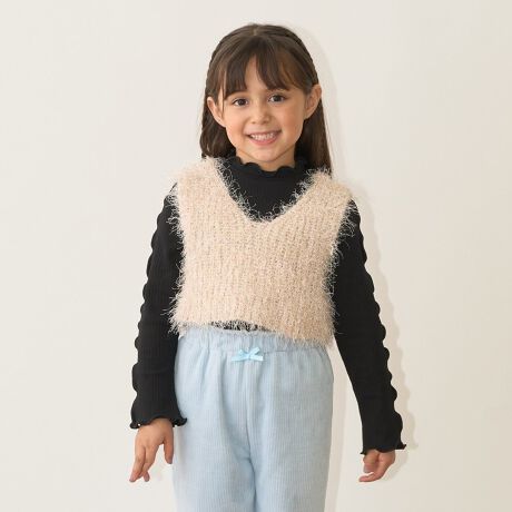 ふわふわのフェザーニットに、キラキラのラメ糸を編み込んだ、とびきりキュートなニットベスト。