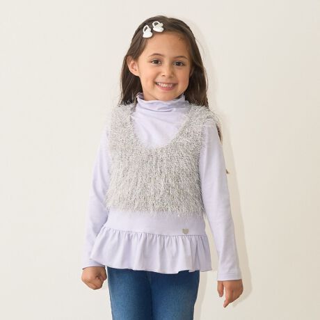 ふわふわのフェザーニットに、キラキラのラメ糸を編み込んだ、とびきりキュートなニットベスト。
