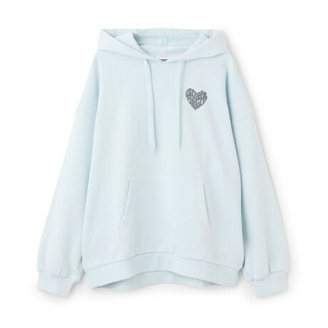 発泡プリントで表現したハートモチーフのロゴデザインが可愛いパーカです。
