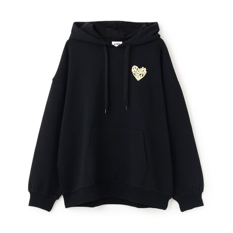 発泡プリントで表現したハートモチーフのロゴデザインが可愛いパーカです。