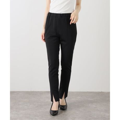 すっきりとした細身ラインながら、程よいストレッチ性で動きやすく、ウエストはゴム仕様でストレスフリーな履き心地です。