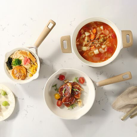 ●どんなキッチンにも合わせやすいおしゃれでかわいいデザイン。カローテシリーズからミルクティーカラーが登場。