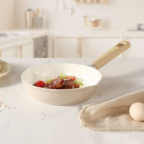 【素材・材質】本体/アルミニウム合金 、内面/セラミック塗膜加工、外面/焼付塗装(底面を除く)、 はり底:ステンレス製、ハンドル/フェノール樹脂+木目調シリコーン塗装