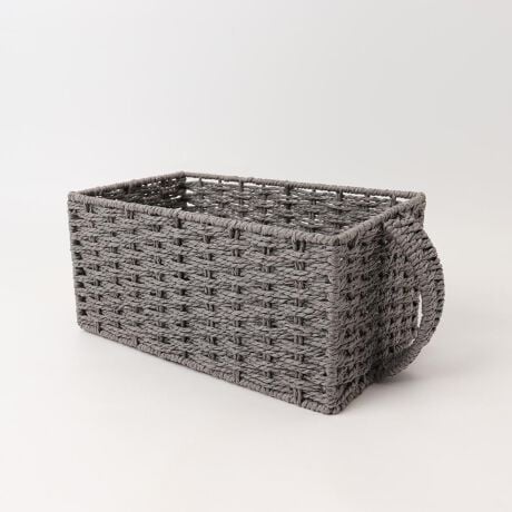 【暮らしに馴染むナチュラル収納】優しい素材感が心地よい空間をつくる♪「パントリーバスケット取手付きL」。【自然に寄り添うやさしい素材感】ナチュラルなペーパー素材がインテリアに溶け込み生活を整えてくれる心地よい存在感。【ストックをまとめる大容量設計】箱物や大きめ食品もしっかり収り、キッチンをスッキリ整えるちょうどいい収納力。【取り出しやすさを考えた快適収納】食器や食材をさっと取り出しやすく、美しく使いやすいキッチンづくりに役立つ実用性も◎【型崩れを防ぐアイアン補強構造】中央にアイアンを編み込むことでフォルムをしっかり保ち、長く使える安定した形状をキープ。【棚上でも扱いやすい取っ手付き】高い場所でも手を伸ばしてつかみやすく、持ち運びもスムーズな持ち手付き。【やさしい風合いのハンドメイド】ひとつずつ丁寧に編み込まれたバスケット。生活感が出にくく、並べるだけでもサマになる♪