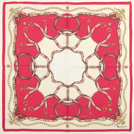 アクアスキュータム 大判 綿シルクハンカチ(58cm)ベルト柄&メタルモチーフ