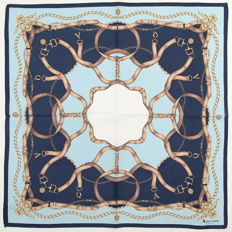 アクアスキュータム 大判 綿シルクハンカチ(58cm)ベルト柄&メタルモチーフ