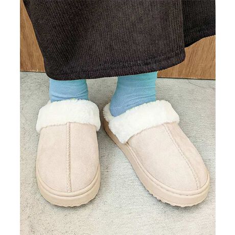 寒い季節の足元にぬくもりをプラスしてくれる、もこもこファー付きのあったかスリッポン。