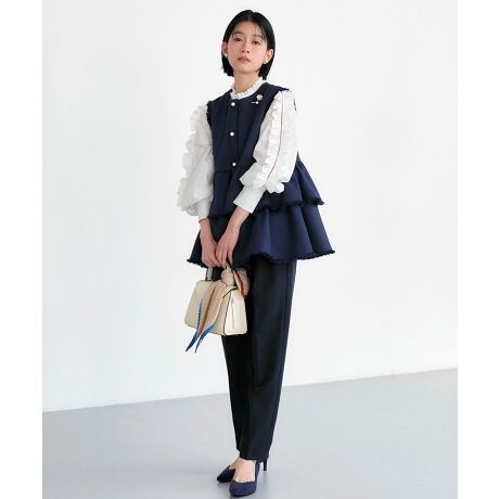 華やぎティアードペプラムで魅せる、女性らしさ際立つ上品セットアップ