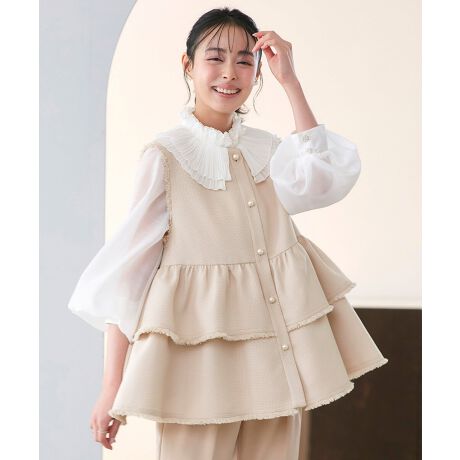 張り感のあるティアードペプラムシルエットのジレ。