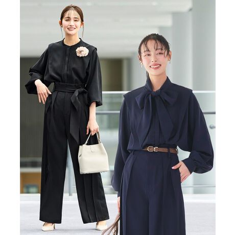 結婚式、披露宴、セレモニー、2次会(二次会)、1.5次会などのお呼ばれや、成人式、同窓会、謝恩会、婚活、街コンなどのパーティーシーンはもちろん、デートや女子会、七五三、お宮参り、誕生日会、入学式(入園式)、卒業式(卒園式)、演奏会、発表会などの学校行事での母親・ママスーツとしてなど、20代・30代・40代・50代まで幅広いシーンで着回せるフォーマルパーティーセットアップパンツドレスです。
