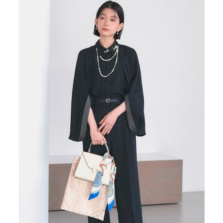 ピンタック×比翼仕立てのすっきりシャツカラーデザイン。