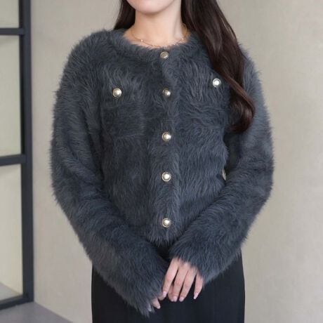 ふわふわとしたシャギーニットで仕立てた1枚。