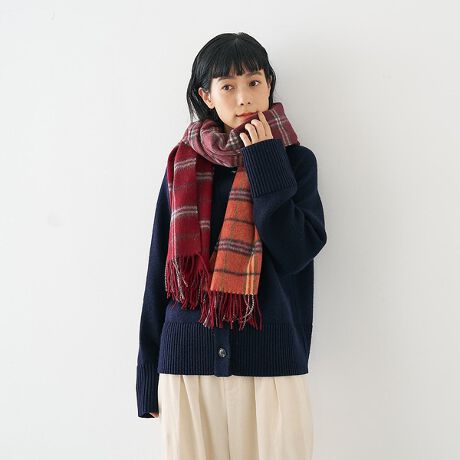 発色の良いウール素材で仕立てた、大判のチェックストール。