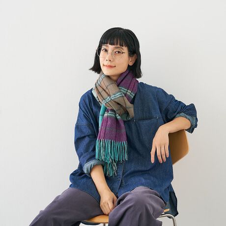 発色の良いウール素材で仕立てた、大判のチェックストール。