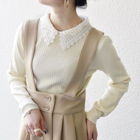 レース襟は取り外しが可能なので、ベーシックなリブニットとしてもお使いいただけます。