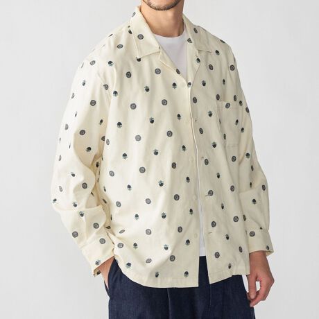 畝が非常に細いコットンコーデュロイ生地に刺繍を施した一枚。