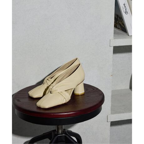 ソフトなシープスキンにたっぷりとギャザーを入れ、ボリューム感にこだわったパンプス。