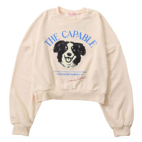 -サガラ刺?の存在感あるドッグワッペンがキュートなトレーナーです。