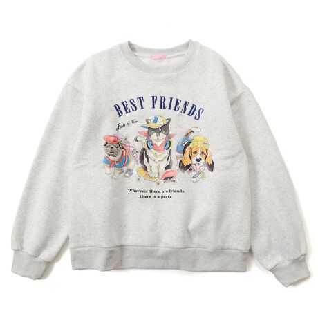 カジュアル 可愛い ネコ プリント ゆったり 秋冬 冬 服 起毛 着回し 白 紺 スウェットプルオーバー