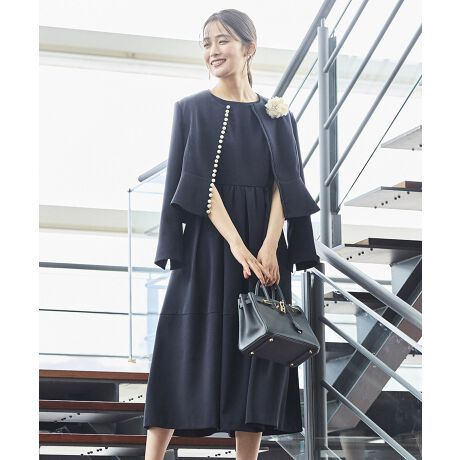パールがアクセントのペプラムジャケットとデイリーにも使い回せるワンピースのセット
