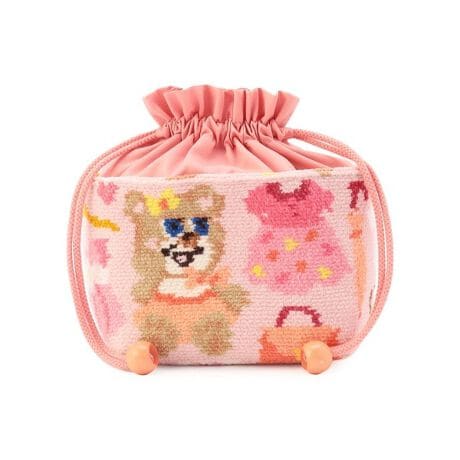 使うたびにワクワクするような『ニナズクローゼット』の巾着です。お気に入りのお洋服やグッズに囲まれてご機嫌なラブラリー二ナをモチーフにしました。ピンクを基調とした、かわいらしいカラーリングも目を引きます。絞り部分を異素材に切り替えることで、アクセントをプラスしました。コスメからモバイルグッズ、お菓子まで、さまざまなものを入れられる一品です。
