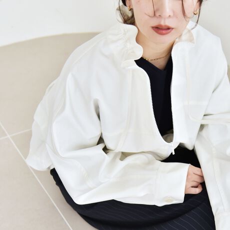 バランスのとりやすいショート丈なので、ワイドパンツからタイトスカートまで幅広く着回しが可能。