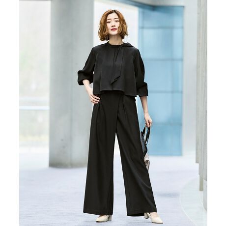 結婚式、披露宴、セレモニー、2次会(二次会)、1.5次会などのお呼ばれや、成人式、同窓会、謝恩会、婚活、街コンなどのパーティーシーンはもちろん、デートや女子会、七五三、お宮参り、誕生日会、入学式(入園式)、卒業式(卒園式)、演奏会、発表会などの学校行事での母親・ママスーツとしてなど、20代・30代・40代・50代まで幅広いシーンで着回せるフォーマルパーティーセットアップパンツドレスです。