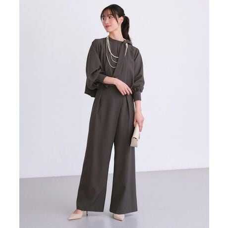 リボン衿ラップ風ワイドパンツセットアップ