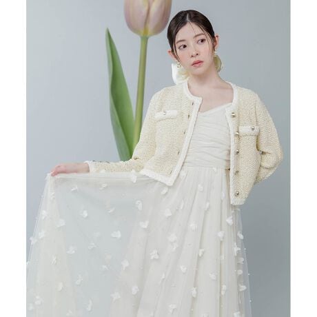繊細なフラワー×パールのチュールで仕立てた、ドレスライクな一枚。