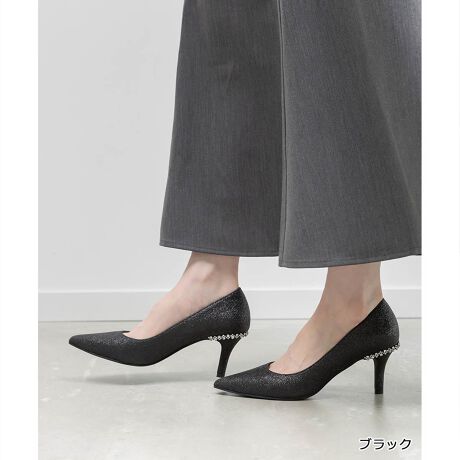 煌めくビジューヒールが目を惹くポインテッドトゥパンプス。