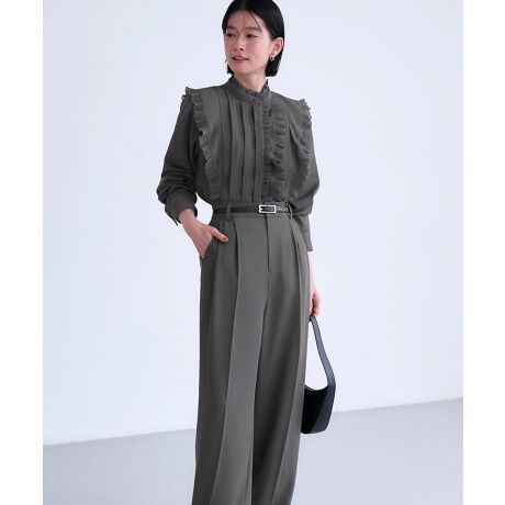 単品でも着まわせるタック入りワイドパンツ。