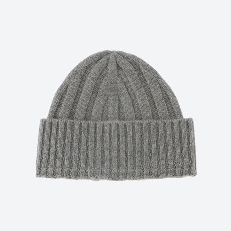 こちらは、縦のラインが美しいリブ編みをベースに、折り返しデザインを施したカシミヤニット帽です。