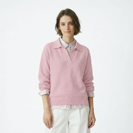 [型番:72263180351]繊細な味わいを楽しめるミックスカラーのニット。トレンドの衿つきスキッパーデザインで、シンプルな装いも高感度な表情に。少しゆるりとしたシルエットで、着心地が楽なのも魅力です。※商品画像はサンプルを使用しているため、実際の商品と色味などの仕様が異なる場合がございます。予めご了承ください。ライトブルー/ピンクmodel:T.167着用サイズ:38ベージュmodel:T.165着用サイズ:38
